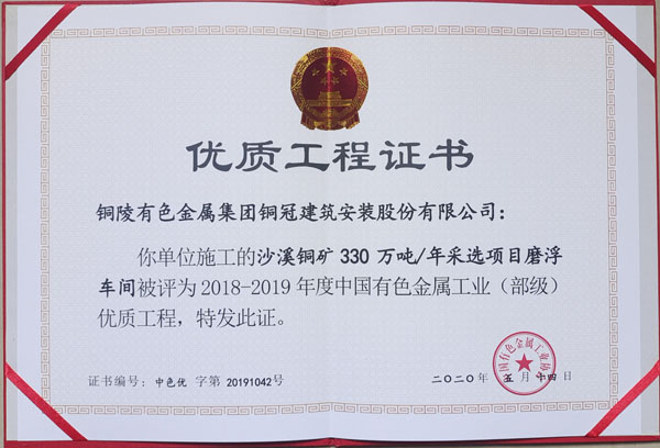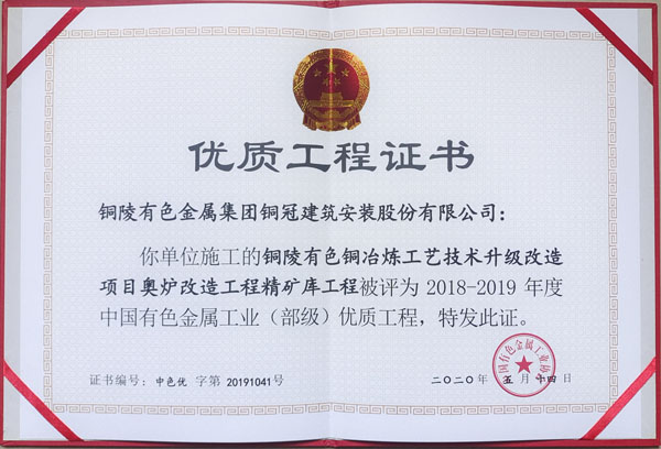 铜陵市2020年优良工程(铜陵有色铜冶炼...